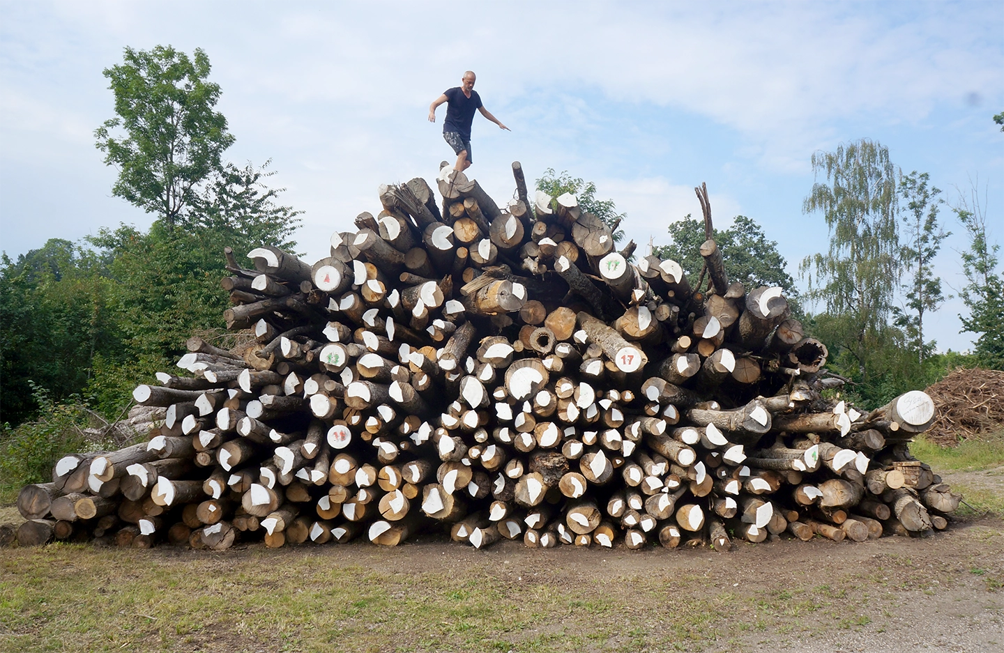 A memorial to the fallen trees of Upper Austria, destroyed by a beetle that arrived on the black winds of climate change.